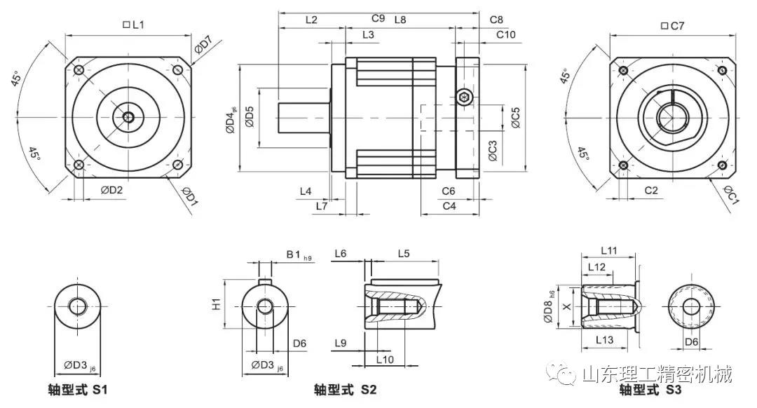 例如這樣一個圖紙,第一個接口是減速機(jī)與伺服電機(jī)的接口,這個通常是需要定制的,減速機(jī)生產(chǎn)廠家會根據(jù)客戶選擇的伺服電機(jī)的接口來定制減速機(jī)的接口,所以在和減速機(jī)供應(yīng)商溝通的時候,你需要提供伺服電機(jī)的接口給他們。